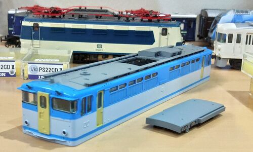 遅々として進まず EF65を一度に3両も整備していますが、何かと色々あって作業が中断しています。最も手入れ範囲の大きな2127号機さんは、塗装工程が終わっていても部品単位の手入れが必要なので、これまたここで中断中。 手すりもスカイブルーにす…
