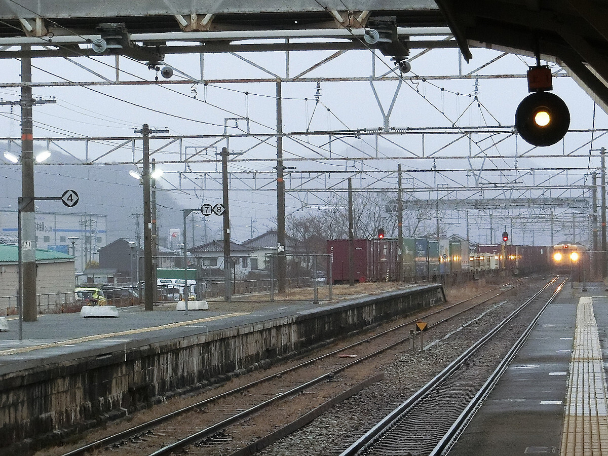 今や旅客の幹線ではないのですが、貨物列車は頻繁にやって来ます。